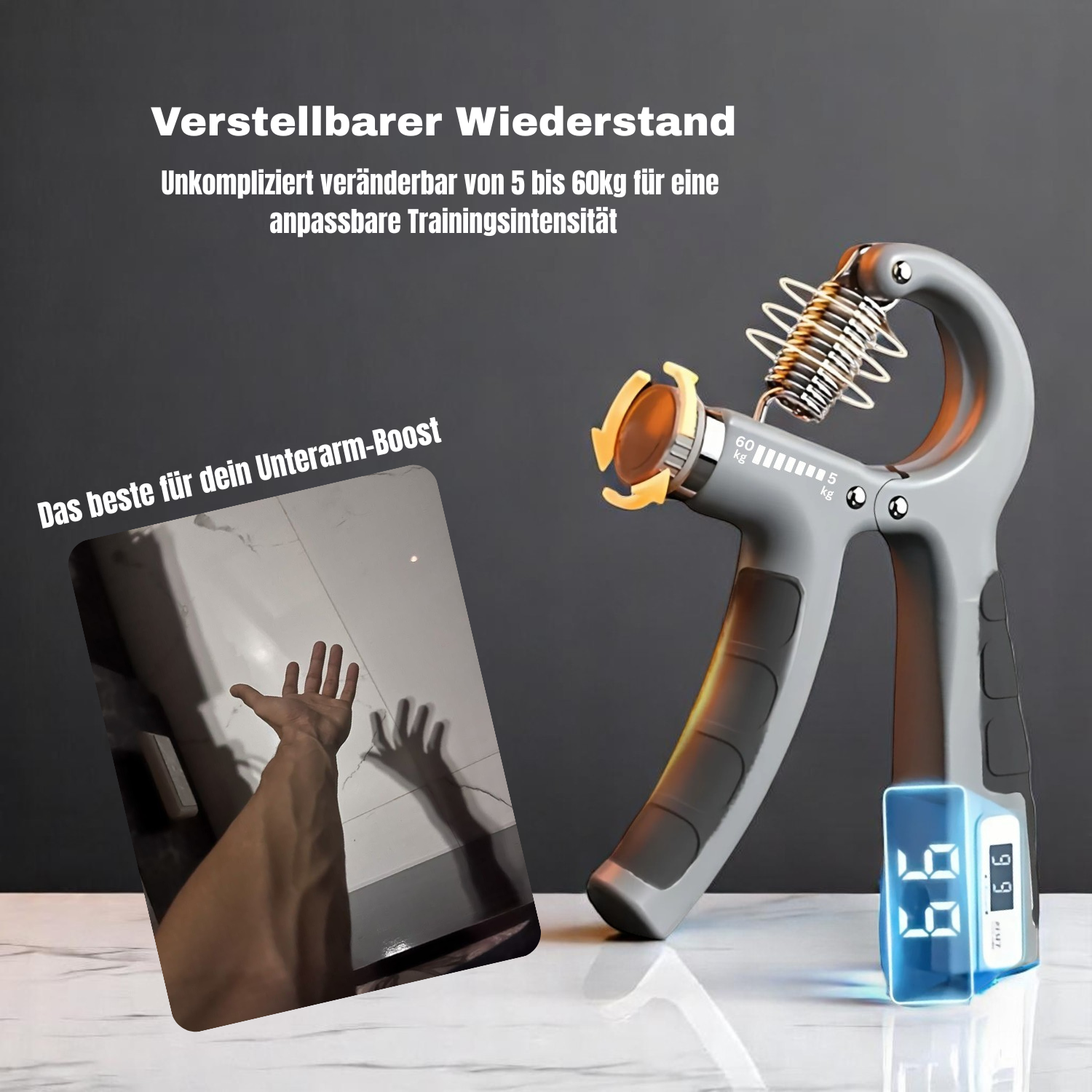 Unser GripKing™ Unterarmtrainer bietet dir nicht nur ein effektives Workout, sondern auch eine smarte Lösung, um deine Trainingserfolge zu verfolgen – mit dem integrierten Wiederholungszähler. Dieser praktische Zähler erfasst jede deiner Wiederholungen automatisch, sodass dein Training einfacher und effizienter wird.